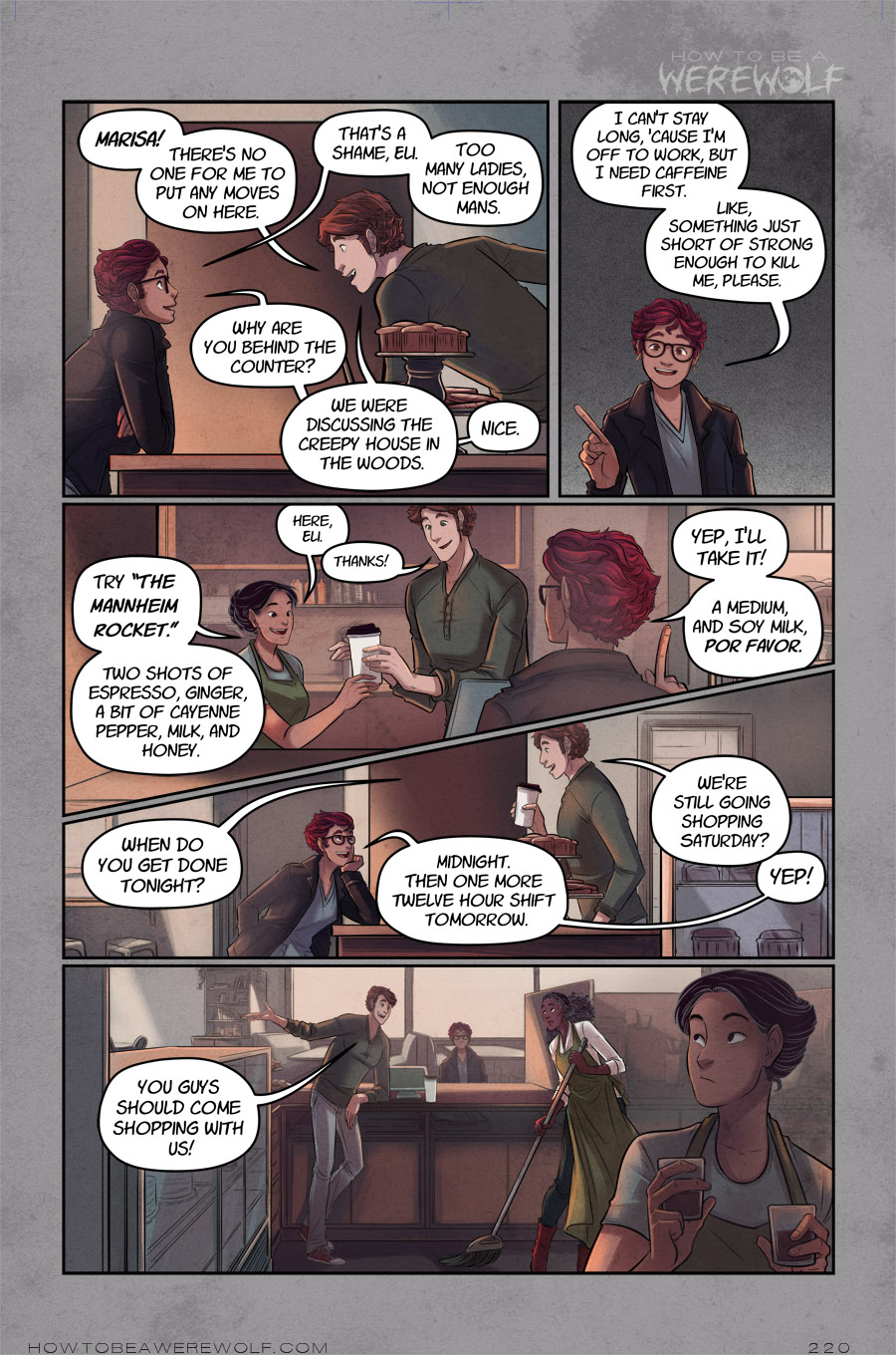 If you've ever said to yourself, "Self, I really love stories about werewolves tearing each other apart, but all I really want is a comic where they all go shopping together," then I have written this comic for you. And me. Because that's all I've ever wanted. This whole comic is just a very elaborate set up for a werewolf shopping montage. (You probably think I'm joking but I'm not.)
